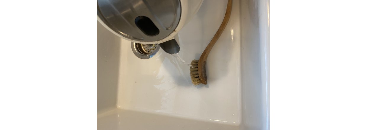 opvaskebørster og andre køkkenbørster der hele tiden er i kontakt med vand og snavs, kræver en nogen anden pleje.
